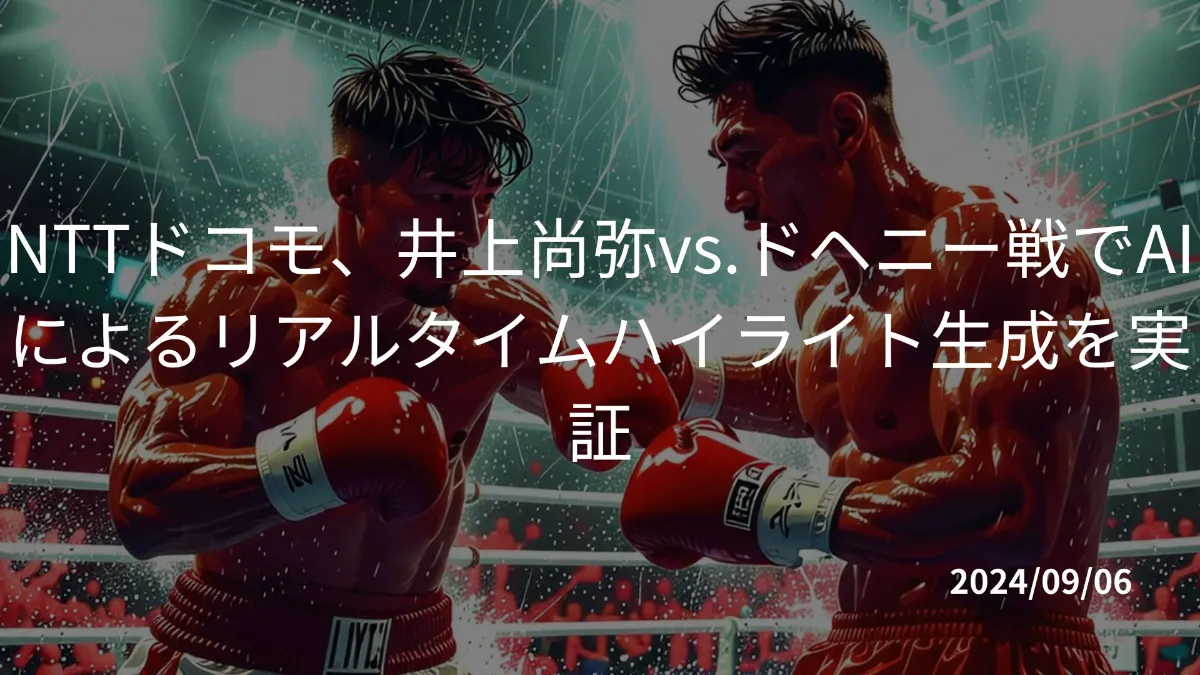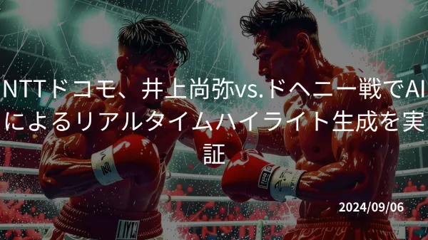 NTTドコモは、9月3日に無料ライブ配信したプロボクシングの井上尚弥選手vs.TJ ドヘニー選手の世界タイトルマッチにおいて、AIを活用したハイライトシーンの抽出と要約文章の自動生成を実施したと発表しました。この技術では、NECの「NEC Multimedia OLAP」を用いて、複数の認識AIによるマルチモーダル分析により、ストリーミング映像からリアルタイムにハイライトシーンを抽出。さらに、大規模言語モデル(LLM)を活用して、臨場感ある表現や特定選手に焦点を当てた多様な視点の要約文章を生成しました。