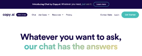 Copy.aiはパーソナルアシスタントであり、ChatGPTは会話型AIチャットボットです。