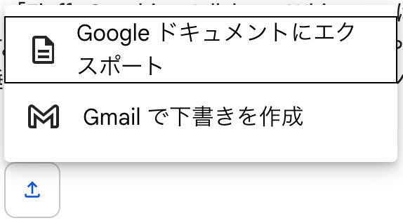 Google Bardは、GmailとGoogleドキュメントに生成したデータを吐き出せます。そのため、メール文を作成したら下書きに飛ばすといったことも可能です。