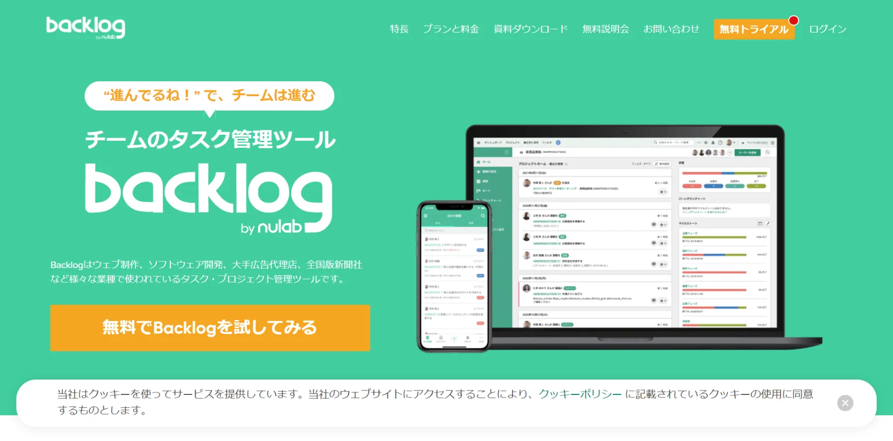 Backlog(バックログ)とは、ヌーラボから出ているプロジェクト管理ツールです。