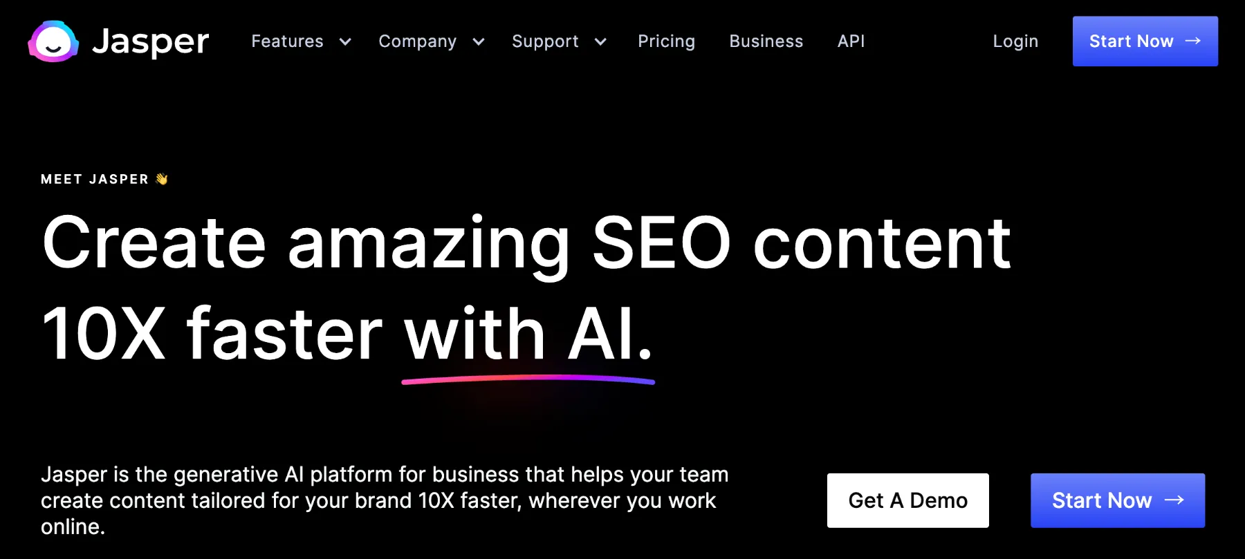 Jasperとは、アメリカのJasper AI, INC.が提供する高性能AIライティングツールです。執筆時点で100,000以上のマーケター・企業が利用しており、25以上の言語に対応しています。